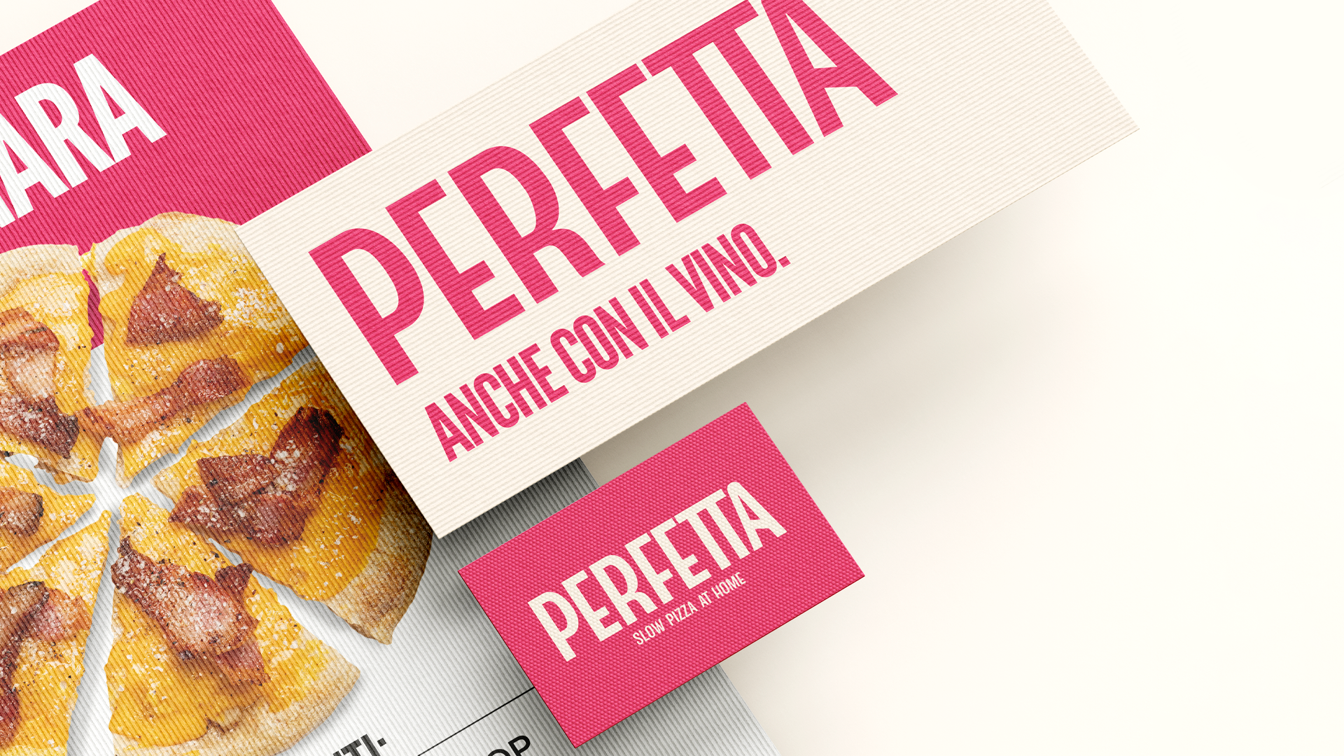 A flexible corporate, giant typography for a giant taste of pizza mixed with unusual application and a powerful Magenta tone.