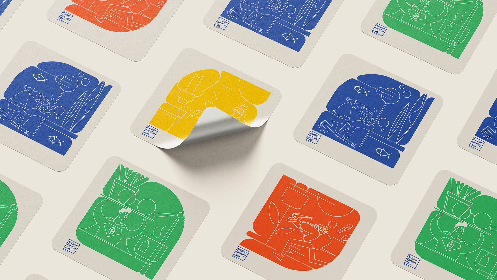 Designing an all branded company event, mixing green ethics, clean visual eyewear and super heroes all together.