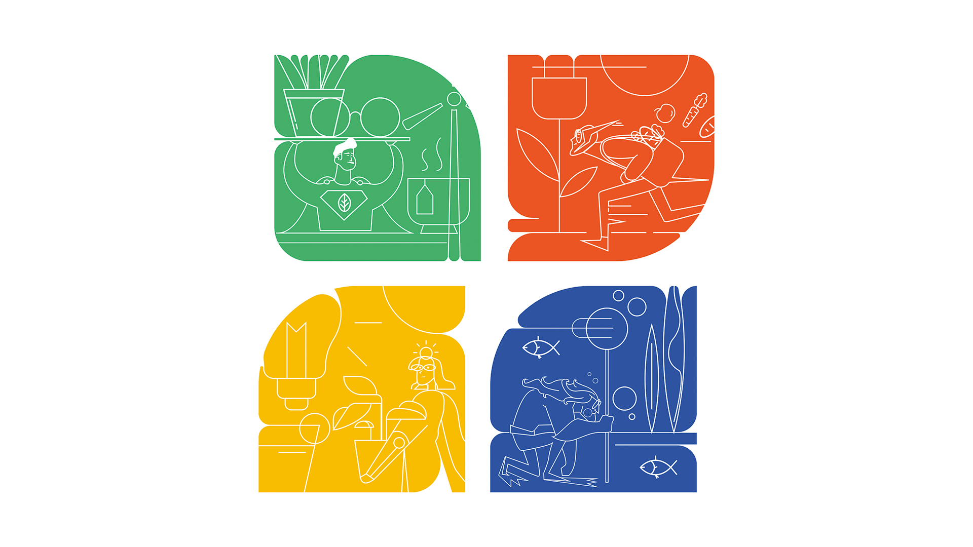Pastel color, multiple application, versatile illustration for a comprehensive visual event.