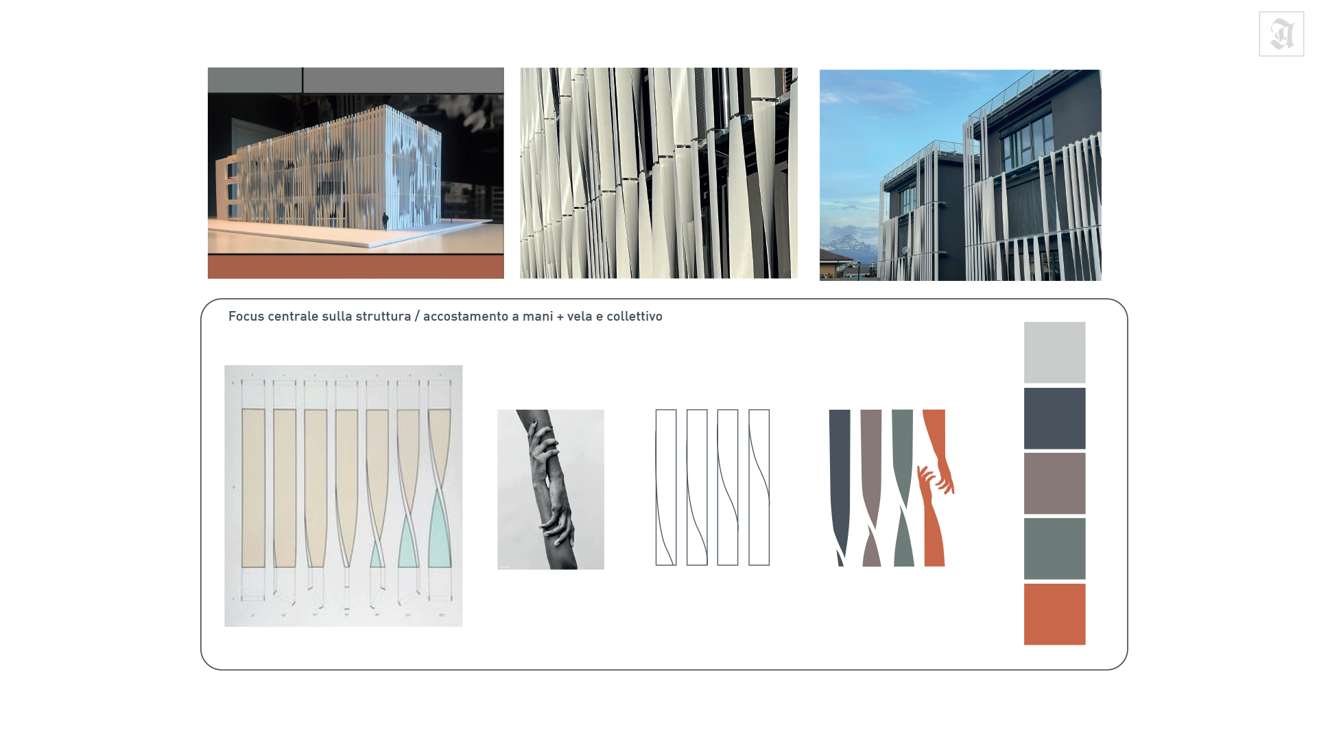 The logo was born by combining the distinctive feature of the building with the figurative contact of the minds that find in it a place of work.